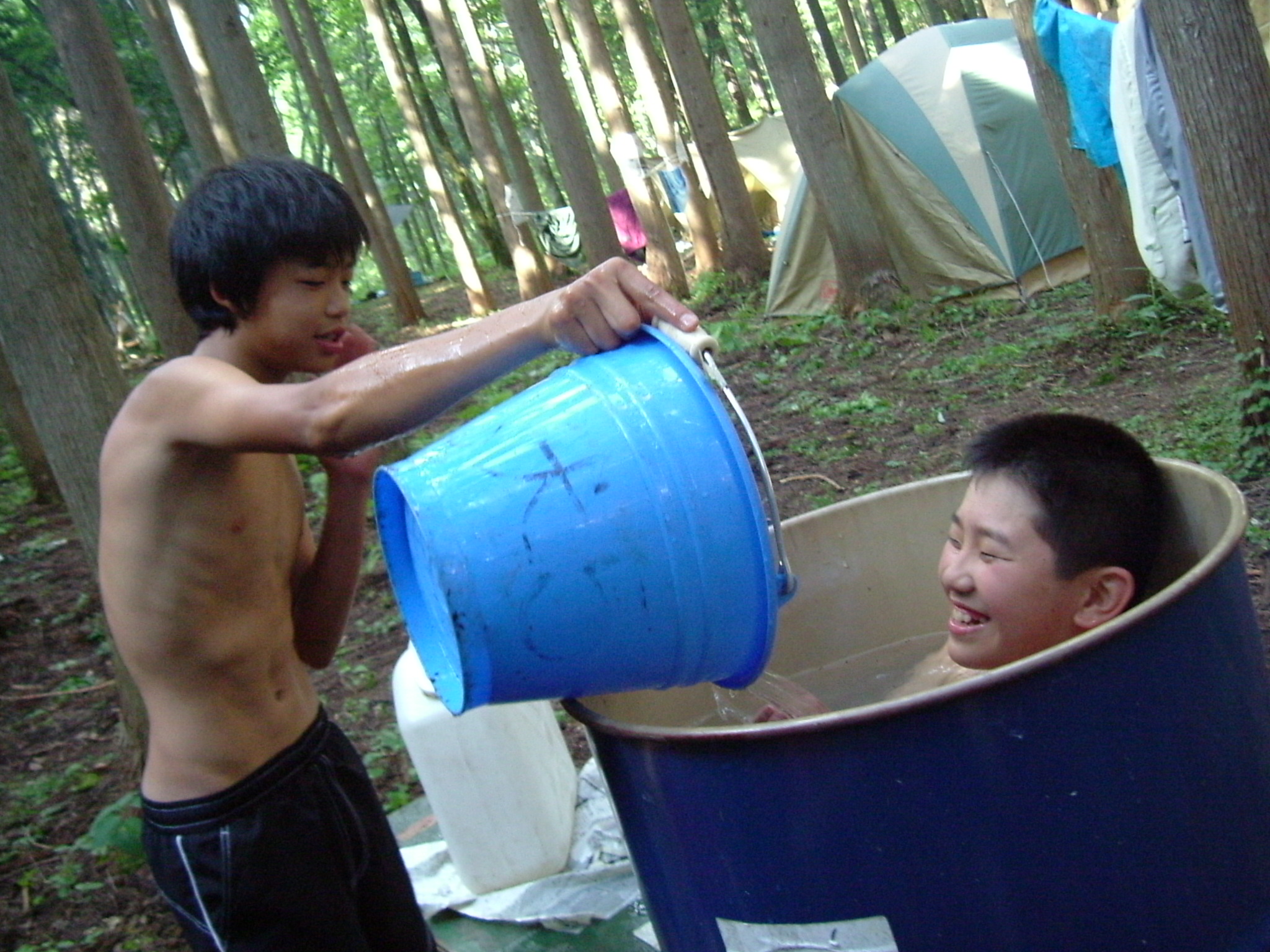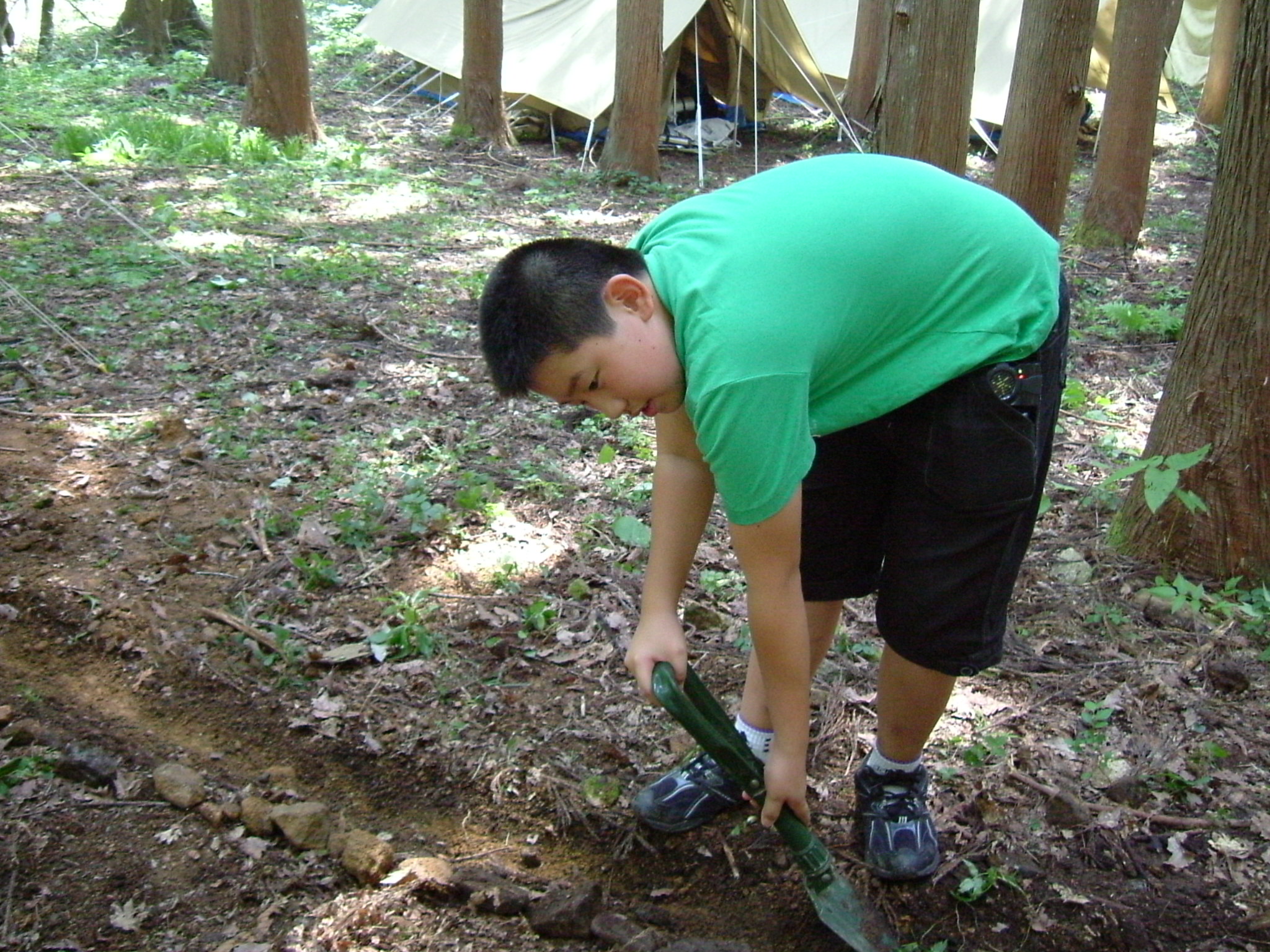 テント張り、溝堀り・・・