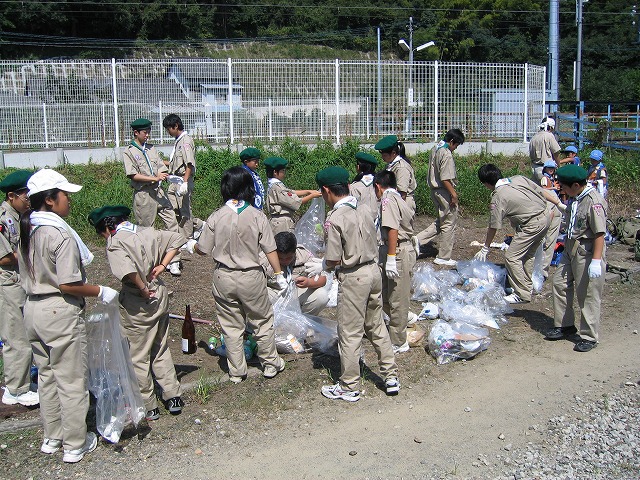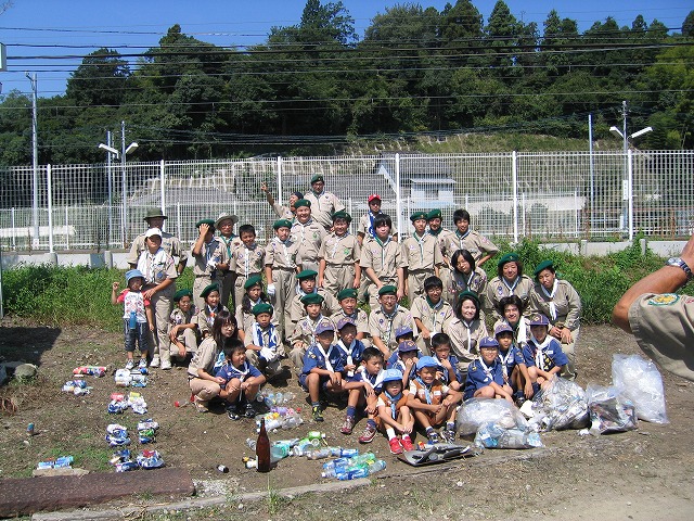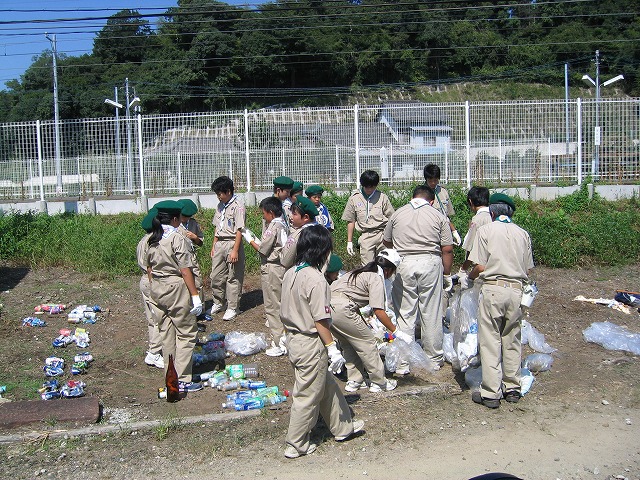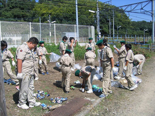 犬山市東部に位置する善師野地区を中心に、スカウト30名、指導者、団委員14名が参加して清掃奉仕作業を実施しました。約2時間の間にアルミ缶58本、スチール缶12本、空き瓶5本、ペットボトル39本が回収されました。また、たばこの吸い殻等も善師野駅周辺で多く回収されました。