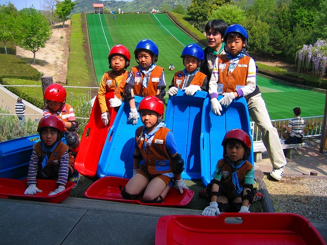 初夏を思わせる天気の中、スカウト7名、指導者6名、家族5名が参加して隊集会が実施されました。まず、集合場所の石作り公園で「自己紹介ゲーム」を行い、名前、学校名、好きな物、嫌いな物等を紹介し、スカウト同士の親近感を一層深めたように思われました。集合場所を後にして「四季の森」に移動し、そりすべり等に興じました。すかうとたちはそりの滑走回数が4回と制限されたため少し物足らなさを感じていました。