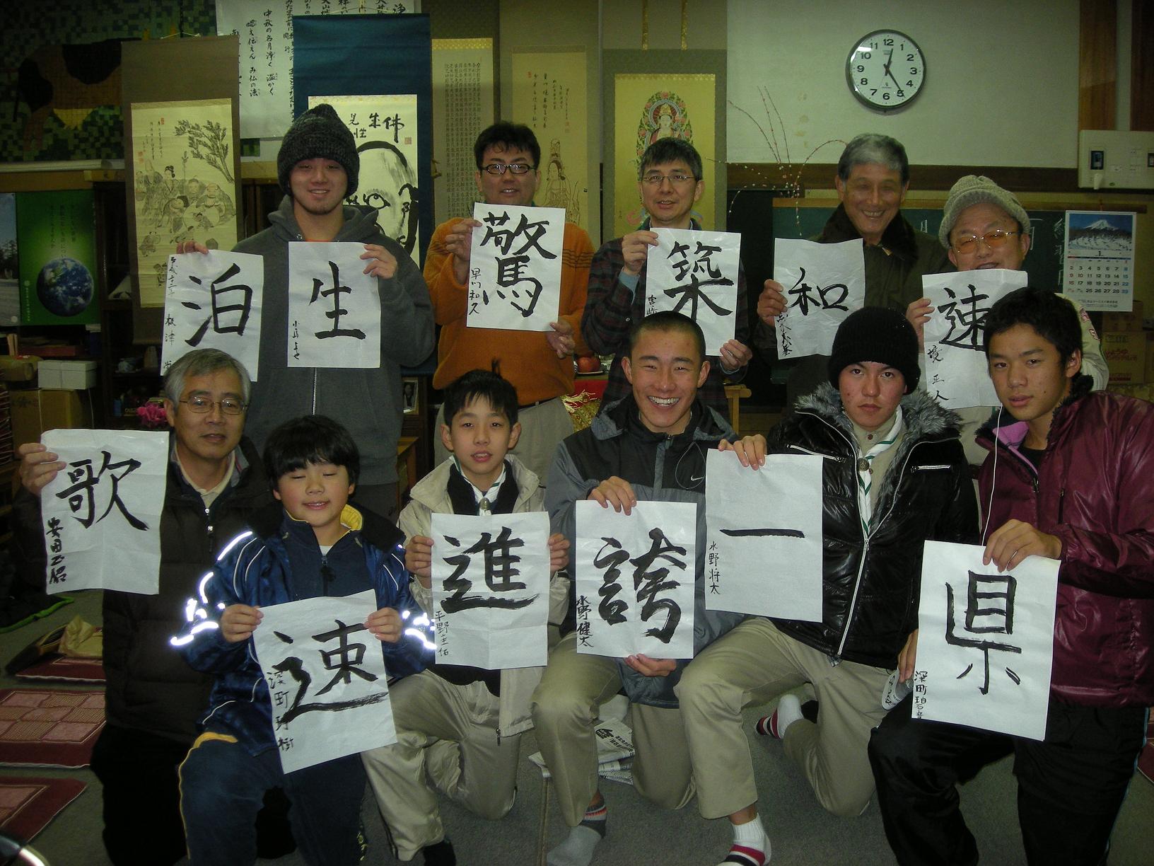 毎年恒例、除夜の鐘つき奉仕&今年の一字です。今年一年を振替って一字で表現しています。谷さん遅いよ〜