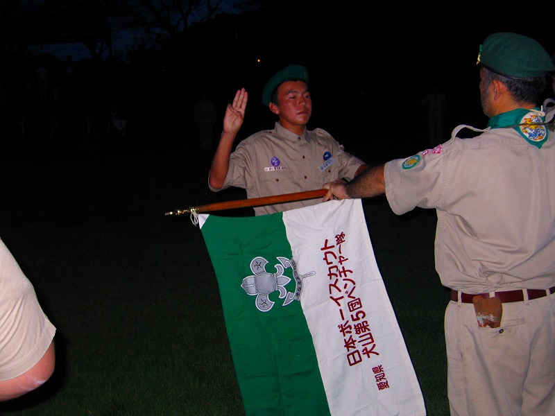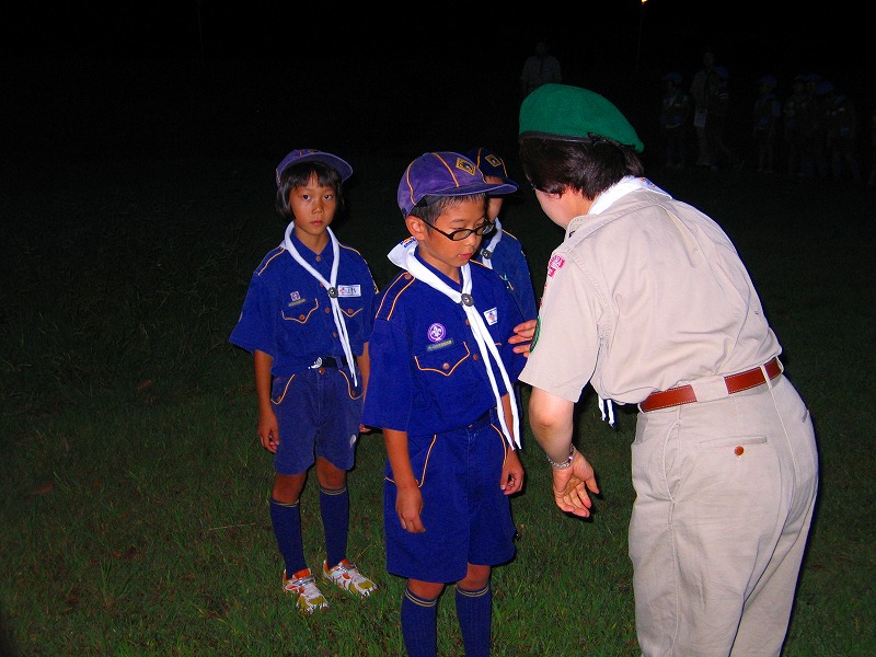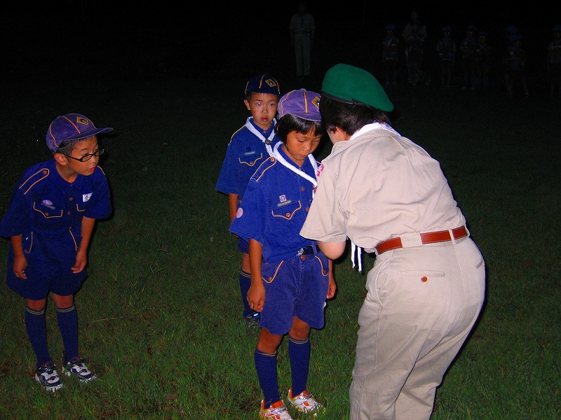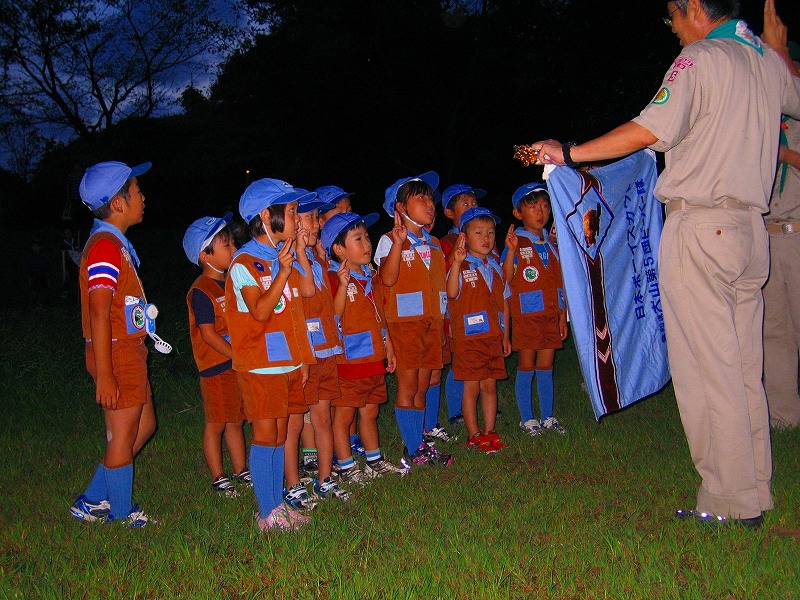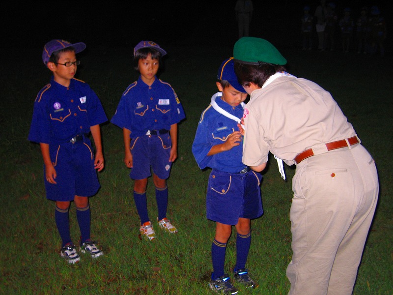 今日は、上進式です。新しい1年間の始まりです。今年は、カブ隊に3名、ボーイ隊に2名、ベンチャー隊に2名の上進者がありました。
