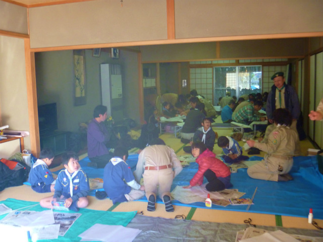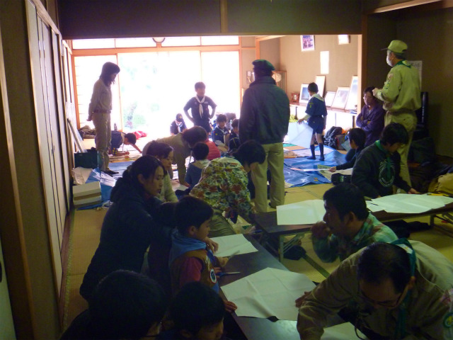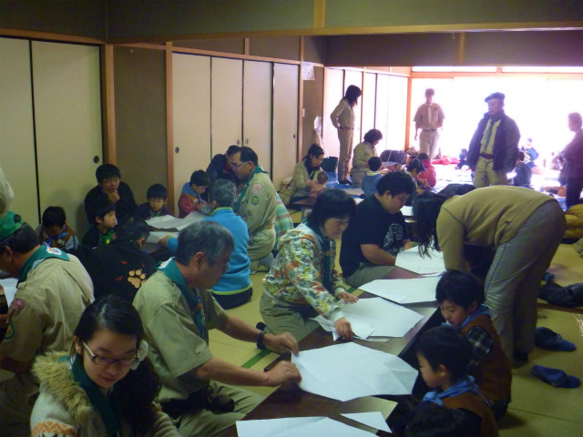 カブ隊のダイヤ凧作り